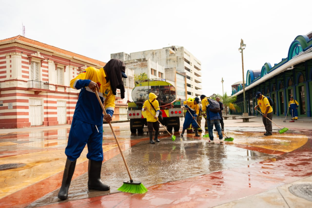 El inicio de la jornada de limpieza integral estuvo liderada, este 1°de enero, por el alcalde Di Martino, quien recorrió junto a los líderes y miembros de las asociaciones de comerciantes de los diversos mercados del casco central de la ciudad, los espacios de la avenida Libertador, Callejón de los Pobres y Plaza Baralt.
