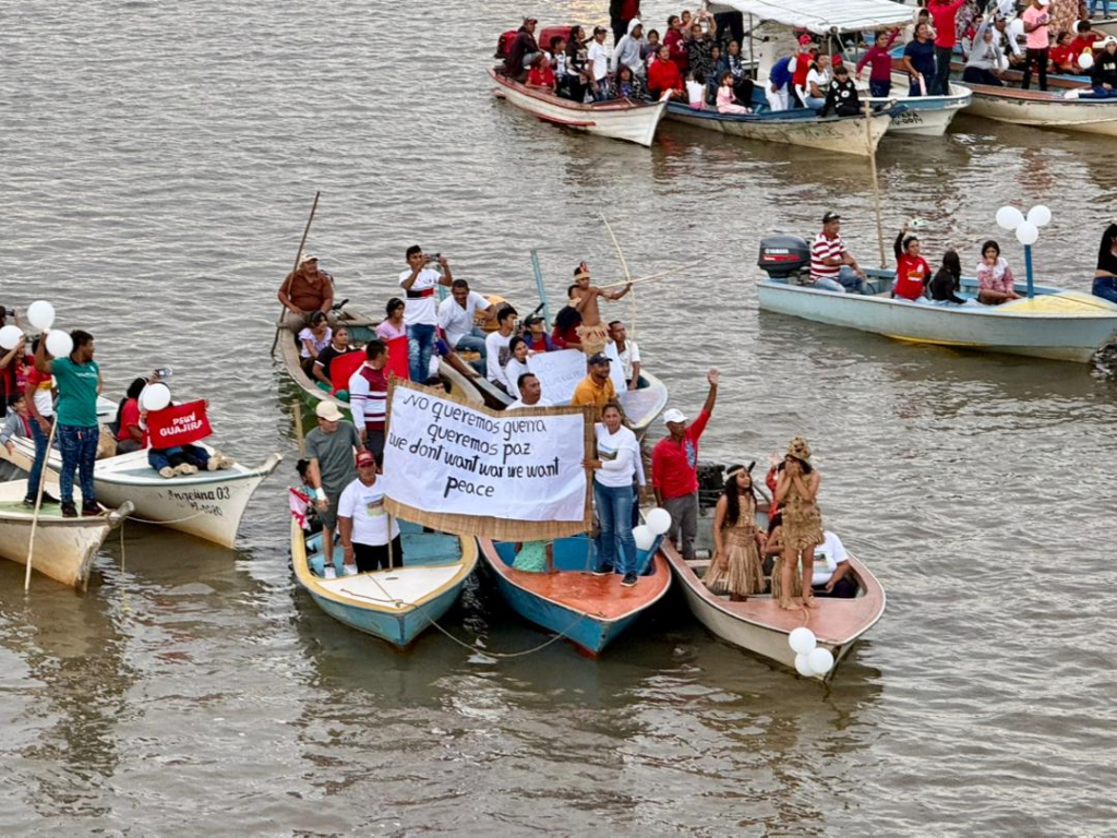 El pueblo de la Guajira venezolana se movilizó a través de los 650 metros del puente sobre el río Limón para, con la fuerza heredada de sus ancestros, alzar su voz para exigir al gobierno estadounidense la liberación del presidente constitucional de Venezuela, Nicolás Maduro y de la primera dama del país, Cilia Flores de Maduro, secuestrados el pasado 3 de enero.